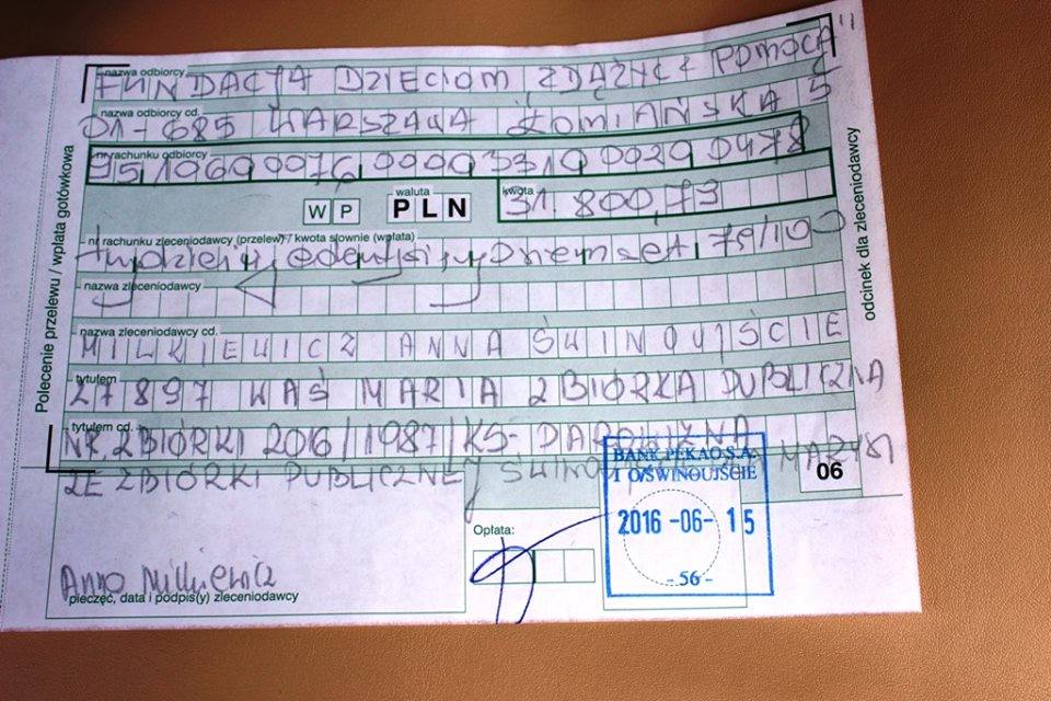 Dzisiaj w I Oddziale Banku Pekao S. A. przy ul. Monte Cassino troje przedstawicieli organizatorów zbiórki publicznej dla Marysi Waś, dokonało bankowego przeliczenia zebranych pieniędzy i...