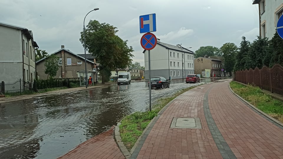 Krótkie, ale intensywne opady deszczu spowodowały, że studzienki nie nadążały z odbiorem wody. Ulica Barlickiego na chwilę została zalana. Foto: Czytelnik