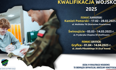 Na terenie całego kraju, w tym także województwa zachodniopomorskiego, rozpocznie się kwalifikacja wojskowa na rok 2025. Wojewoda Zachodniopomorski 14 stycznia wydał oficjalne obwieszczenie w tej sprawie,...
