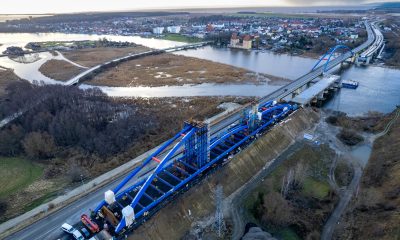 Trwa montaż konstrukcji przęsła łukowego nowego mostu w Wolinie dla drugiej jezdni drogi ekspresowej S3. Całość po zmontowaniu zostanie nasunięta na swoje miejsce nad cieśniną Dziwna...