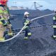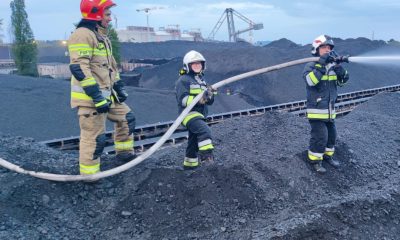 Hałda węgla o powierzchni 30 na 50 metrów i wysokości 15 metrów paliła się w niedzielę (14 maja 2023) wieczorem na terenie portu. Gasili ją strażacy...