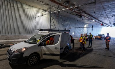 W tunelu w Świnoujściu trwają pomiary przepływu powietrza. Osiem czujników pozawala określić przepływy w całym przekroju tunelu. To jeden z wielu tego rodzaju testów. System wentylacji...
