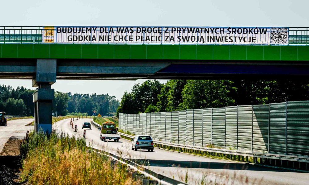 Na wiadukcie nad drogą ekspresową S3, między Troszynem a Dargobądzem, zawisł baner z mocnym przekazem: „Budujemy dla Was drogę z prywatnych środków. GDDKiA nie chce płacić...